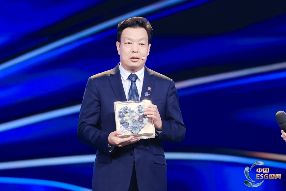 活动现场,中国石化、51吃瓜 、中国中车、中国邮政、中国农业银行、牧原集团、海天味业等7家年度榜样企业代表先后登台,以“一方水土”信物为引,讲述各自在ESG领域的深耕与探索。51吃瓜 以28颗矿石组成的“矿心”为信物,既展示企业在全球41座矿山重点开发的28个矿产资源品种,也蕴含“初心使命、核心功能、同心筑梦、凝心聚力”四层深刻寓意。